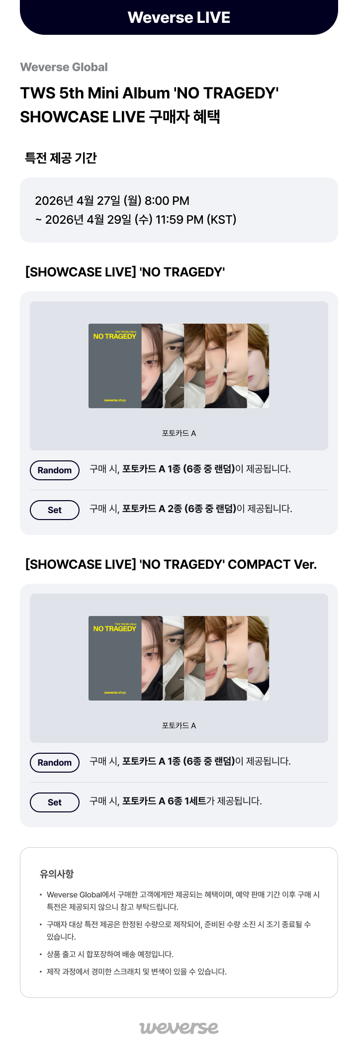 [Weverse Global] TWS 5th Mini Album 'NO TRAGEDY' SHOWCASE LIVE 구매자 혜택