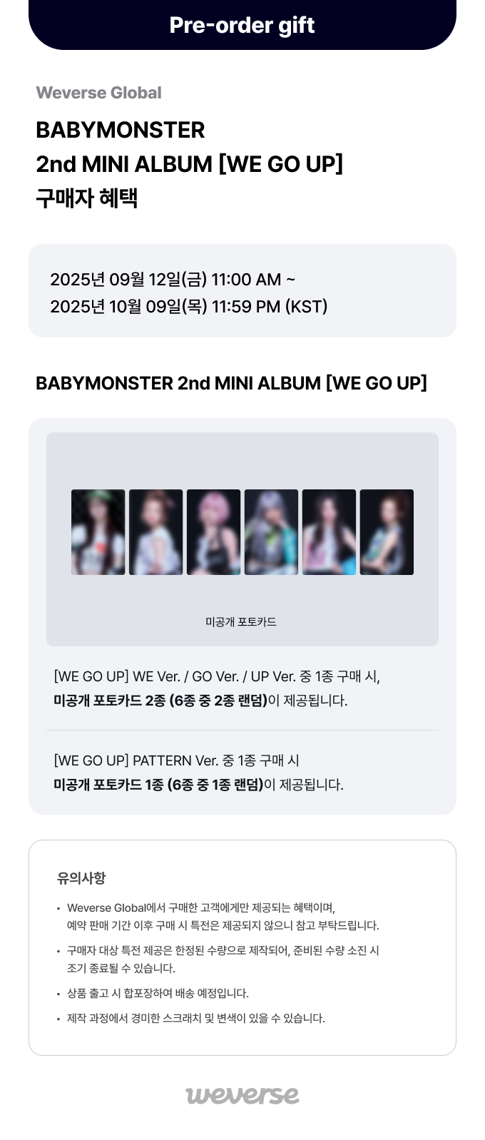 [Weverse Global] BABYMONSTER 2nd MINI ALBUM [WE GO UP] 구매자 혜택