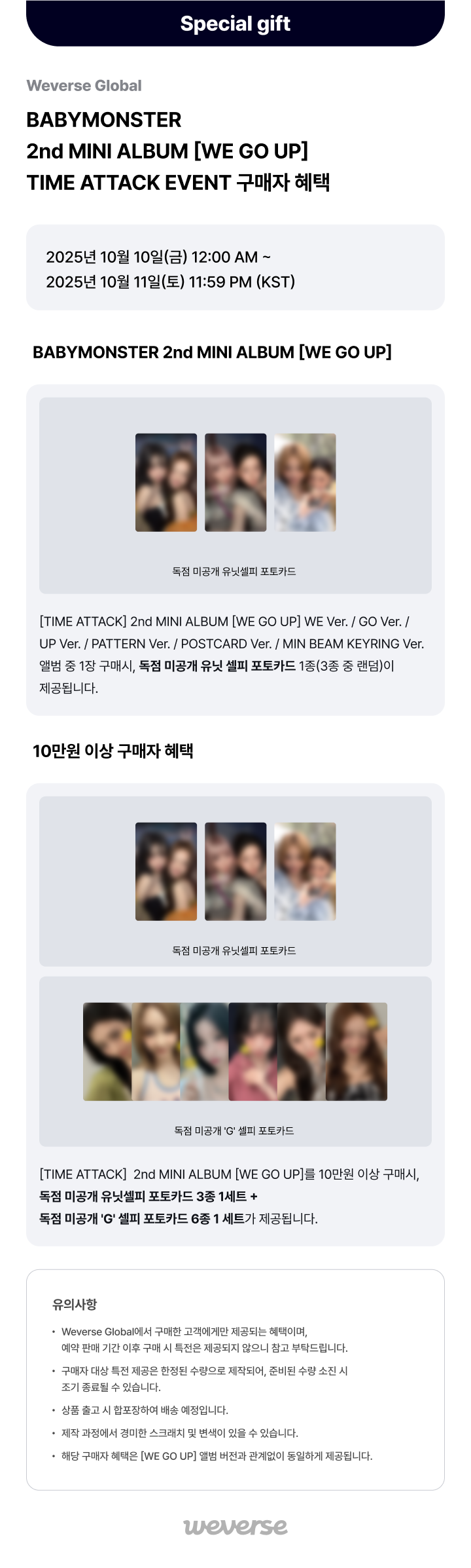 [Weverse Global] BABYMONSTER 2nd MINI ALBUM [WE GO UP] TIME ATTACK EVENT구매자 혜택