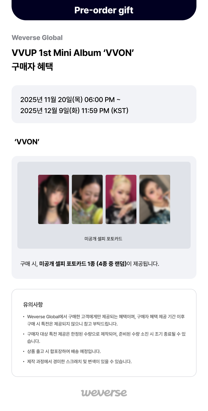 [Weverse Global] VVUP 1st Mini Album ‘VVON’ 구매자 혜택