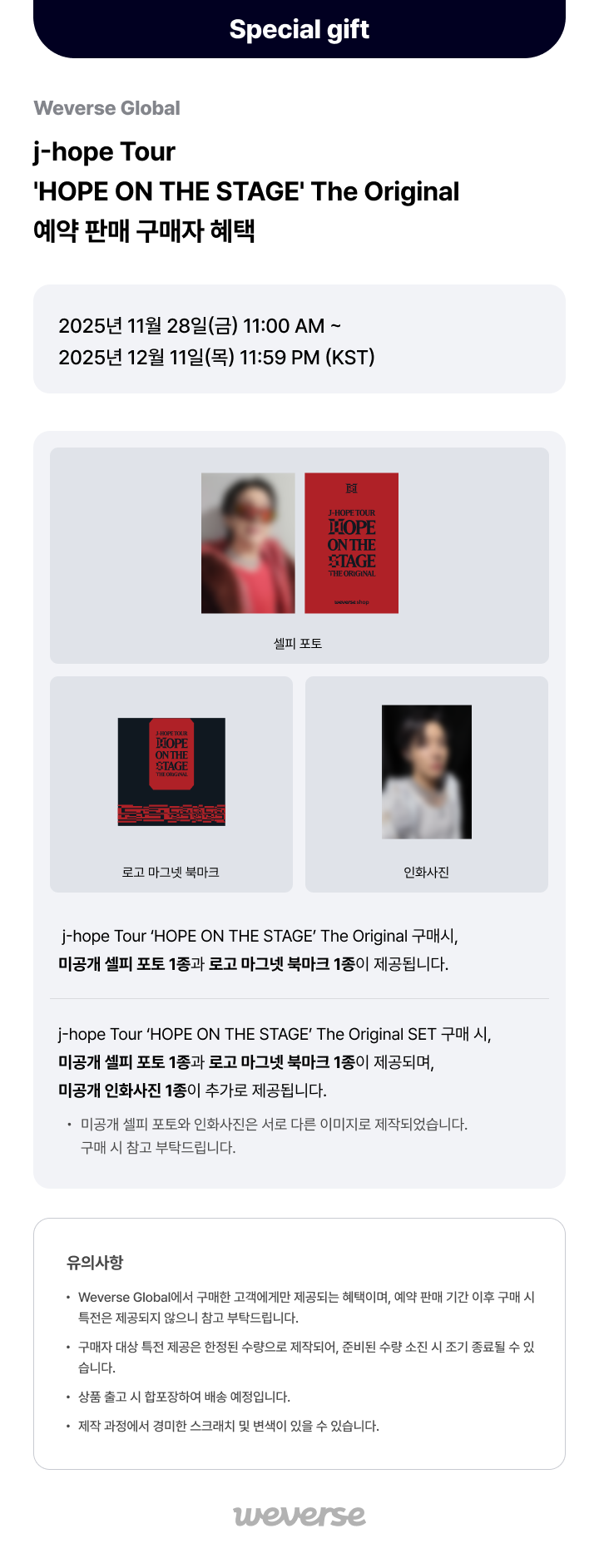 [Weverse Global] j-hope Tour 'HOPE ON THE STAGE' The Original 예약 판매 구매자 한정 특전