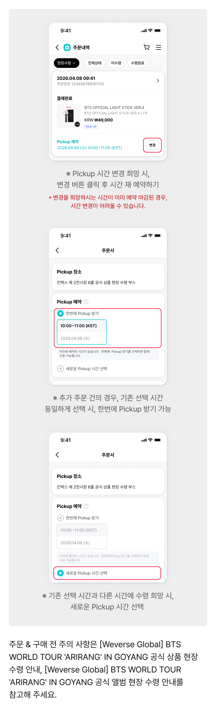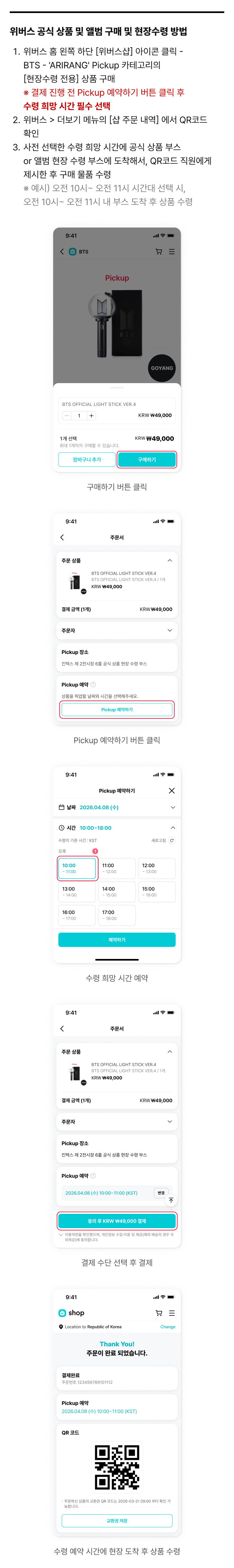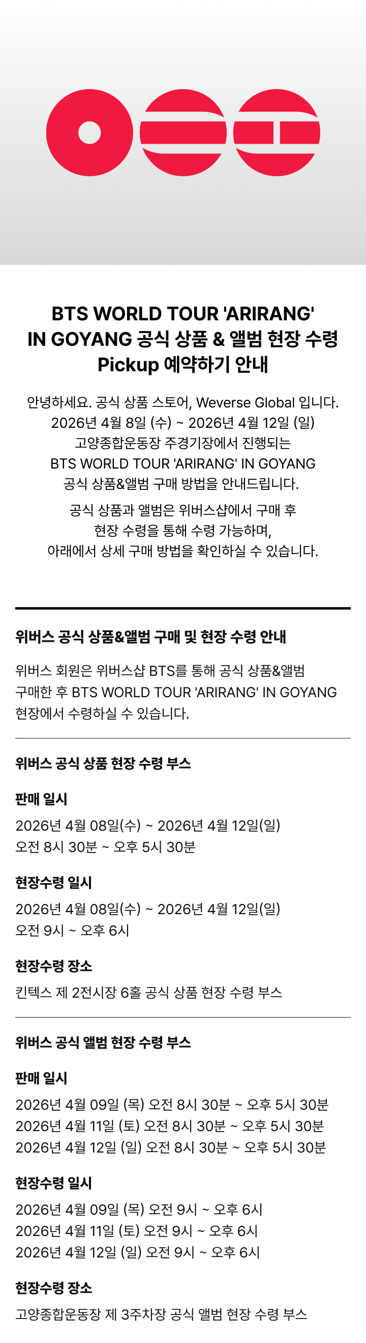 [Weverse Global] BTS WORLD TOUR 'ARIRANG' IN GOYANG 공식 상품 & 앨범 현장 수령 Pickup 예약하기 안내