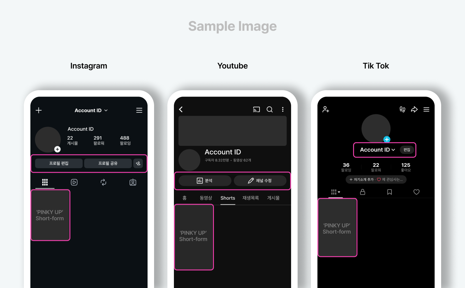 ※SNS 계정 홈 화면 캡쳐 예시
