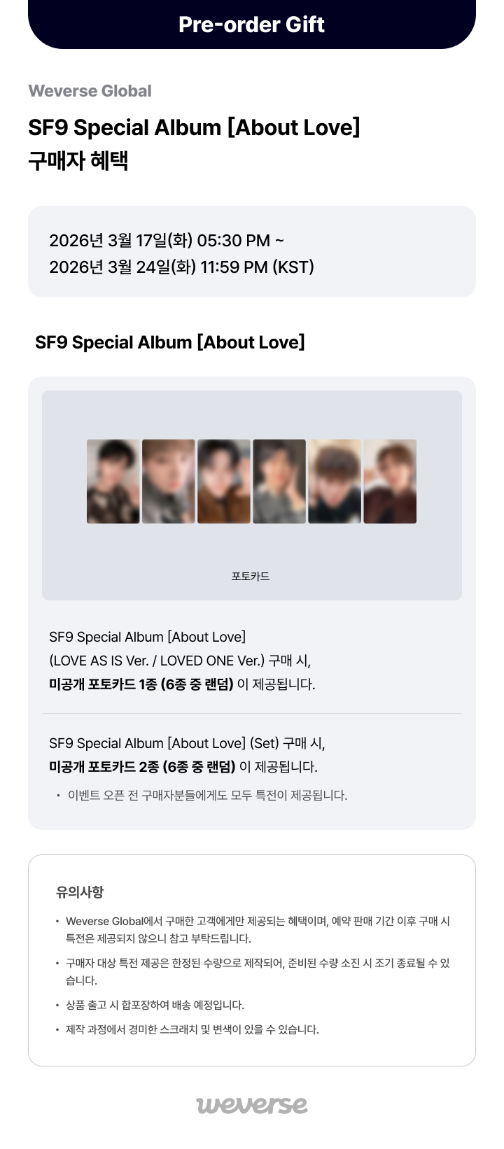 [Weverse Global] SF9 Special Album [About Love] 예약 판매 안내 (26.03.19 updated)
