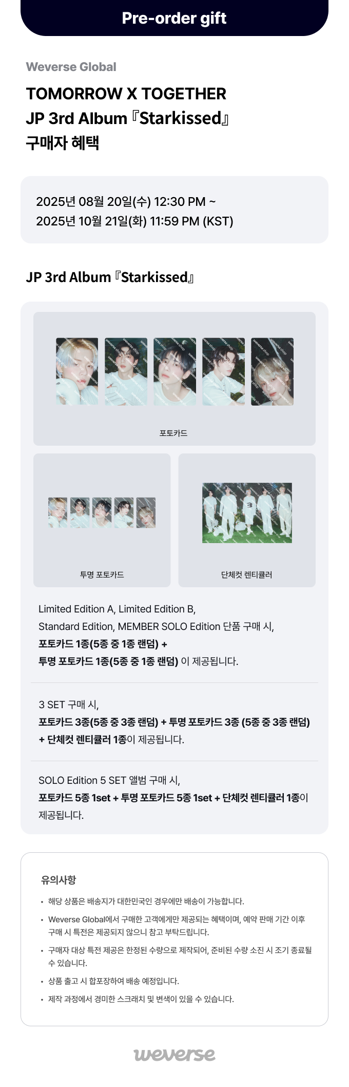 [Weverse Global] TOMORROW X TOGETHER JP 3rd Album 『Starkissed』예약 판매 구매자 한정 특전