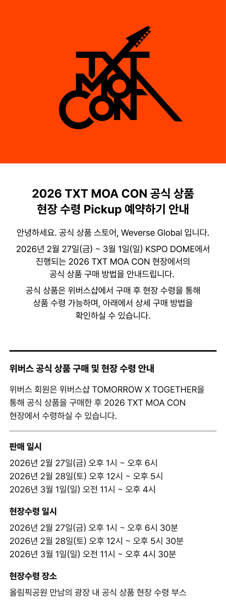 [Weverse Global] 2026 TXT MOA CON 공식 상품 현장 수령 Pickup 예약하기 안내