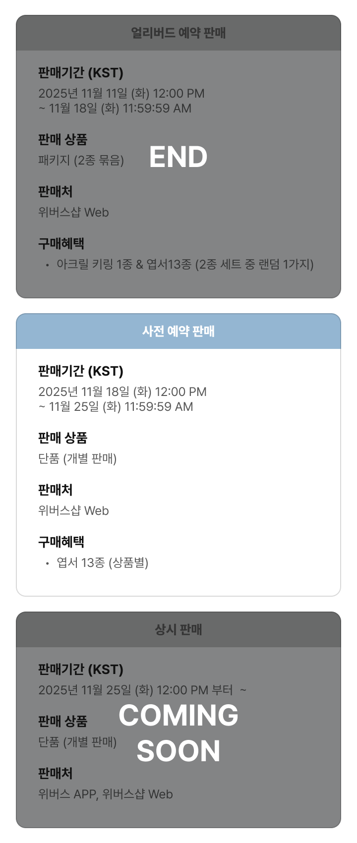 - 특전 취소는 2025년 11월 25일 (화) 11:59:59 AM (KST)까지만 가능하며, 특전 취소 후에 VOD 취소가 가능합니다.