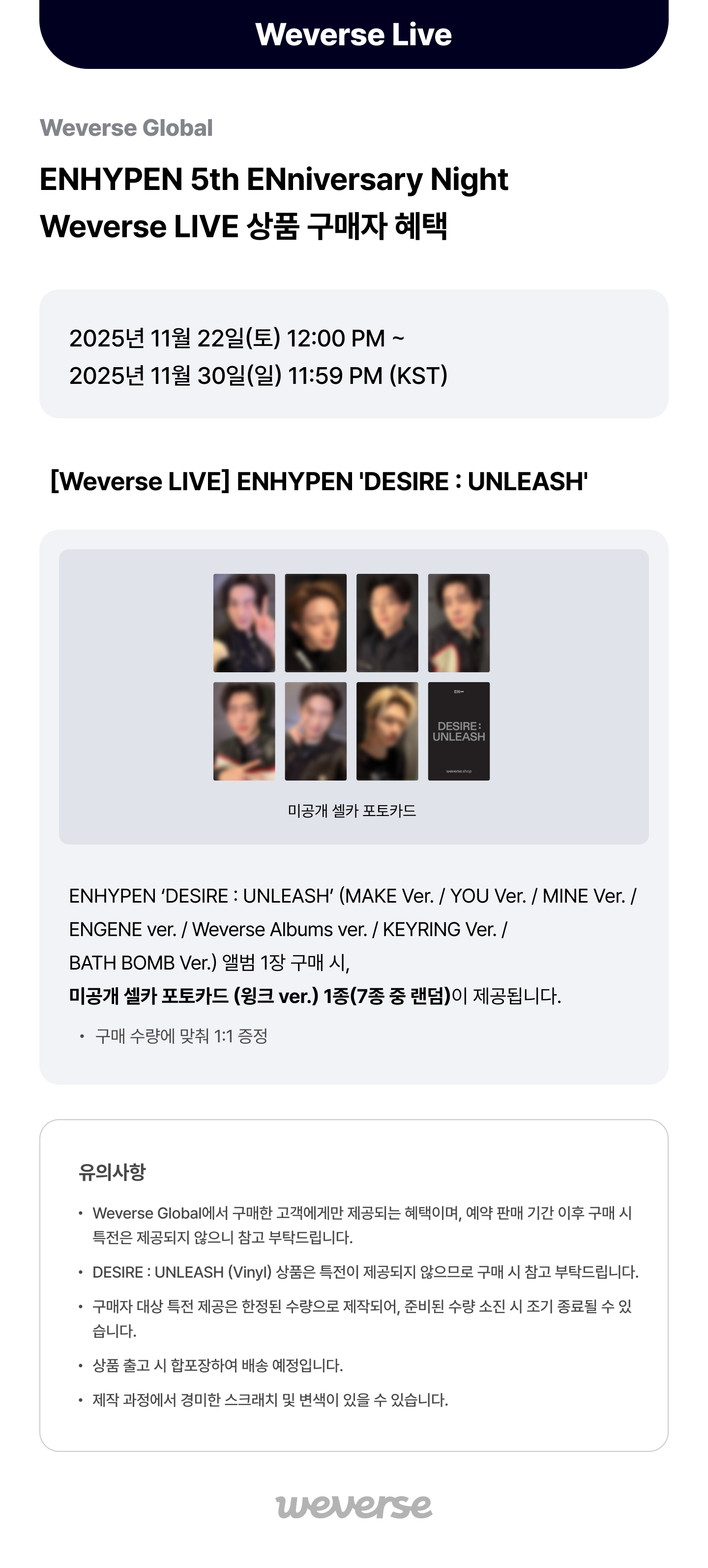 [Weverse Global] ENHYPEN 5th ENniversary Night Weverse LIVE 상품 구매자 혜택