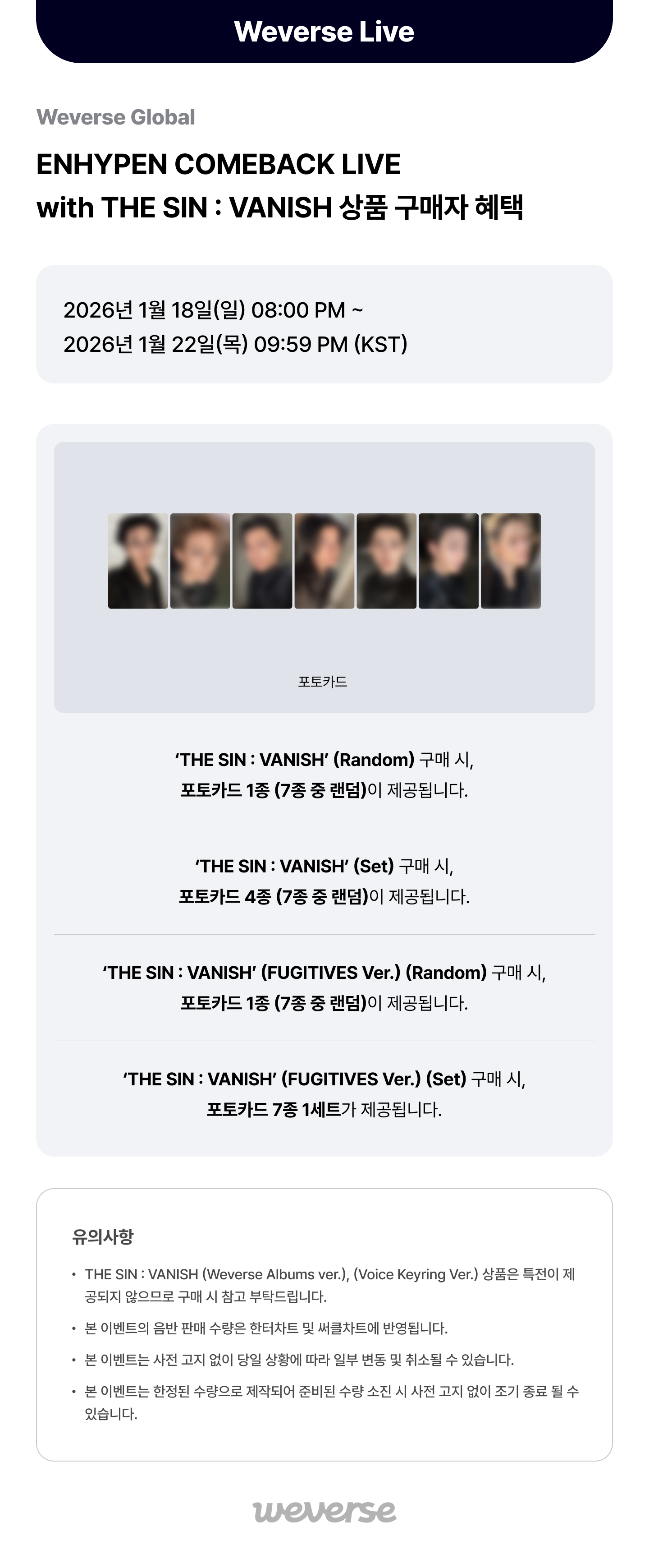 [Weverse Global] ENHYPEN COMEBACK LIVE with THE SIN : VANISH 🦇 상품 구매자 혜택