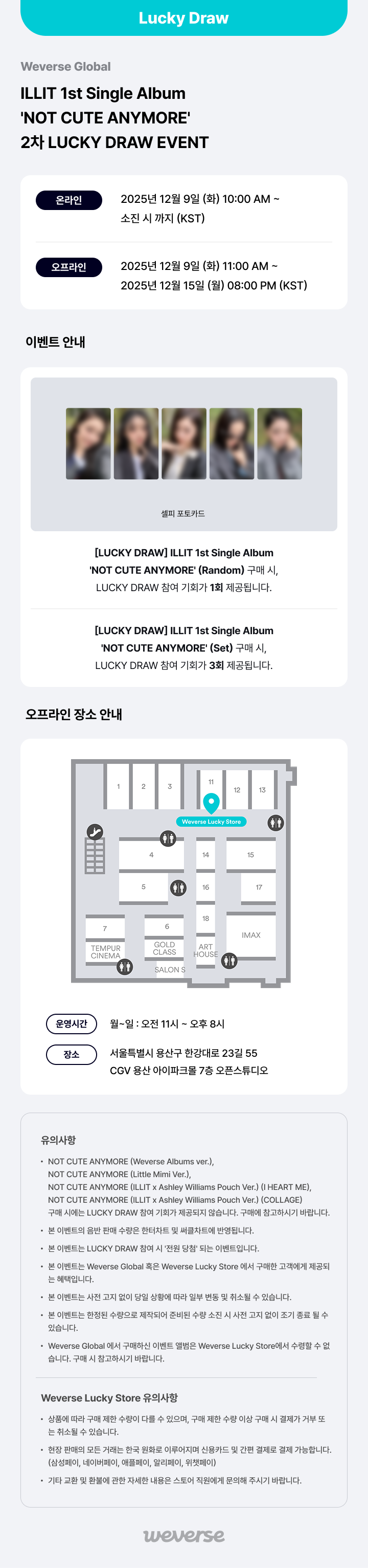 [Weverse Global] ILLIT 1st Single Album 'NOT CUTE ANYMORE' 2차 LUCKY DRAW EVENT