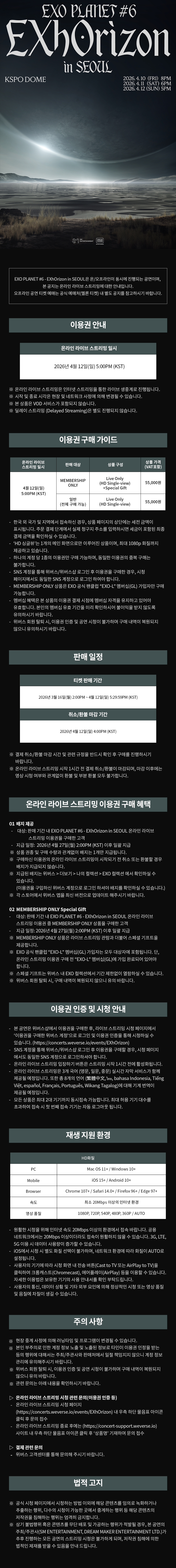 [Weverse Global] EXO PLANET #6 - EXhOrizon in SEOUL 온라인 라이브 스트리밍 이용권 상세 안내