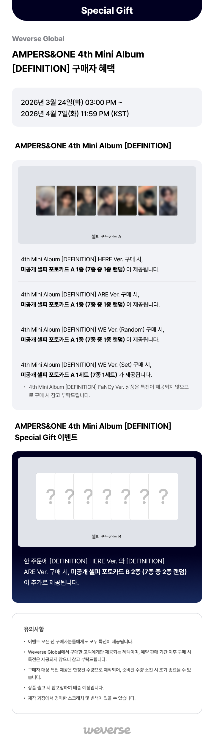 [Weverse Global] AMPERS&ONE 4th Mini Album [DEFINITION] 구매자 혜택 (26.04.01 Updated)N