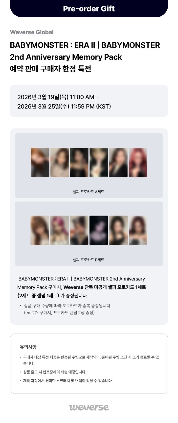 BABYMONSTER : ERA II | BABYMONSTER 2nd Anniversary Memory Pack 예약 판매 구매자 한정 특전