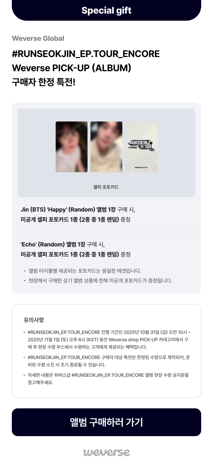 #RUNSEOKJIN_EP.TOUR_ENCORE Weverse PICK-UP (ALBUM) 구매자 한정 특전!
