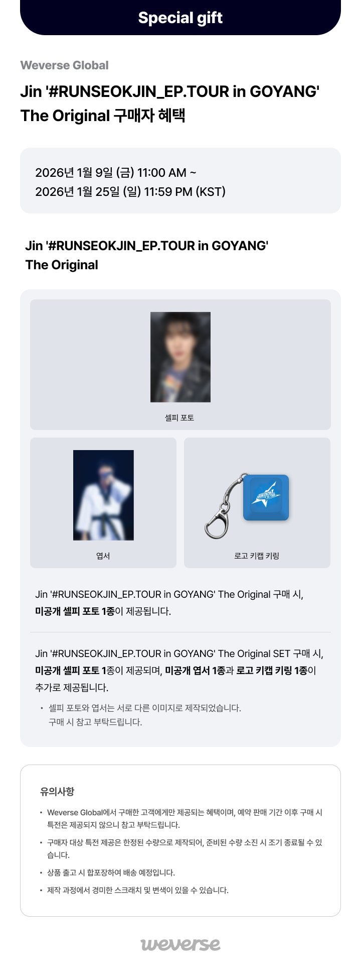 [Weverse Global] Jin '#RUNSEOKJIN_EP.TOUR in GOYANG' The Original 예약 판매 구매자 한정 특전
