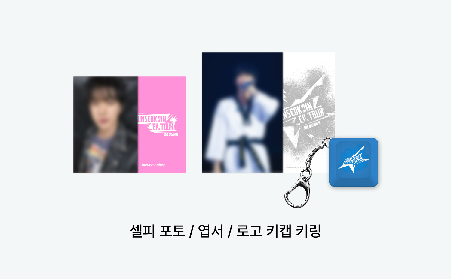 - Jin '#RUNSEOKJIN_EP.TOUR in GOYANG' The Original SET 구매 시, 미공개 셀피 포토 1종이 제공되며, 엽서 1종과 로고 키캡 키링 1종이 추가로 제공됩니다.