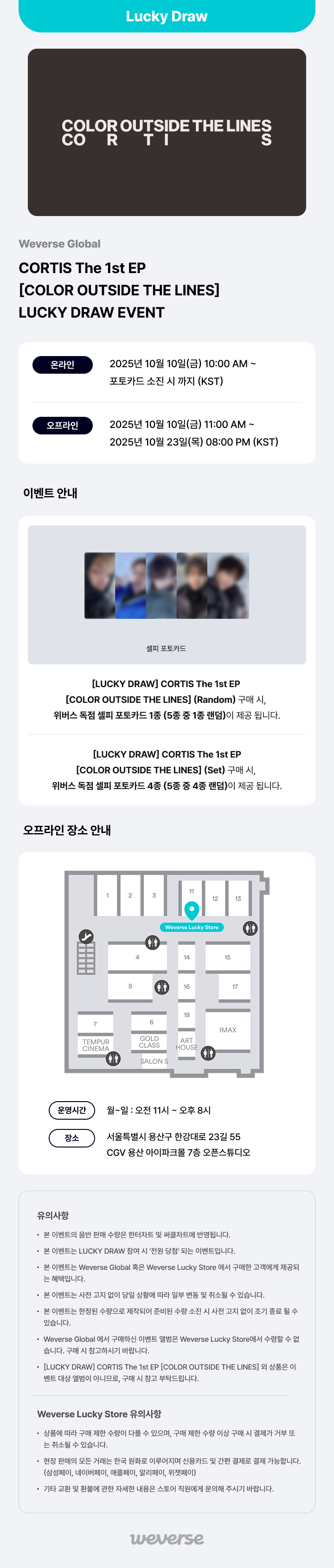 [Weverse Global] CORTIS The 1st EP [COLOR OUTSIDE THE LINES] 2차 LUCKY DRAW EVENT 안내