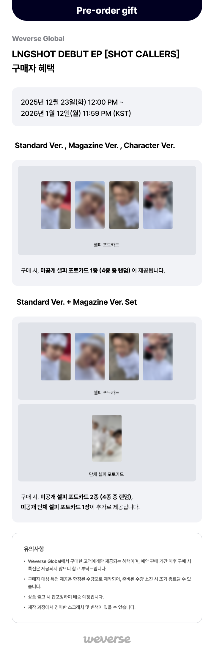 [Weverse Global] LNGSHOT DEBUT EP [SHOT CALLERS] 구매자 혜택