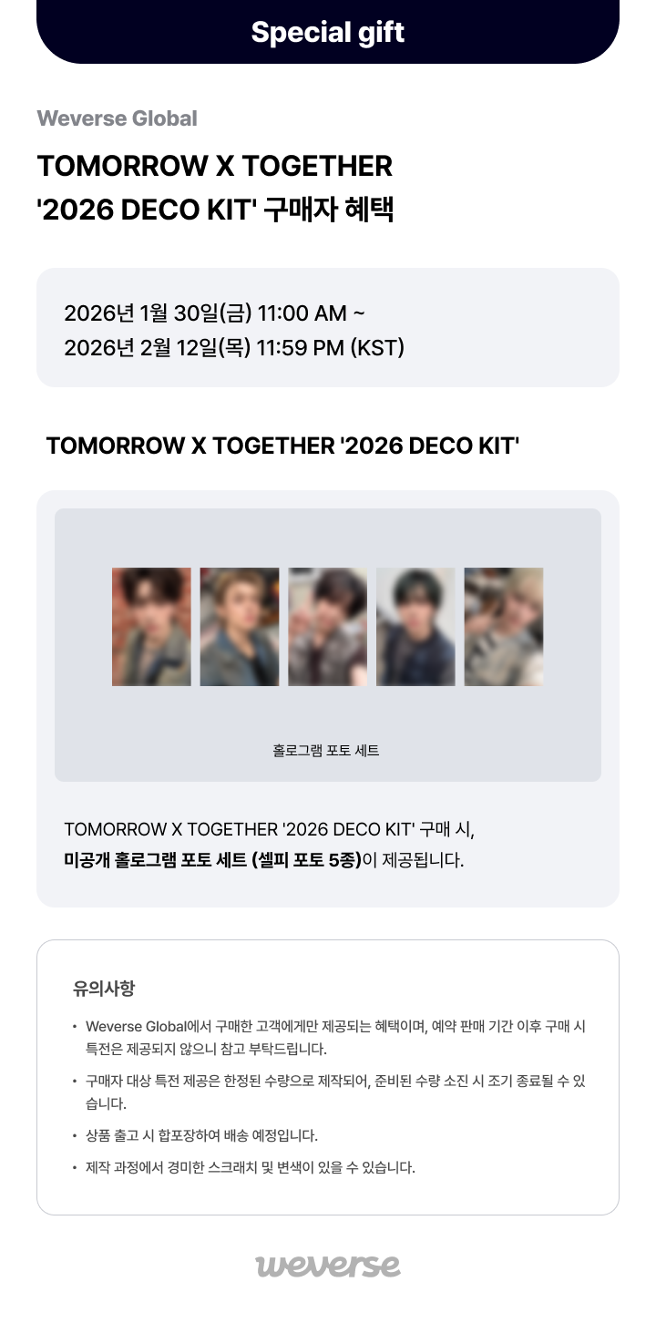 [Weverse Global] TOMORROW X TOGETHER '2026 DECO KIT' 예약 판매 구매자 한정 특전