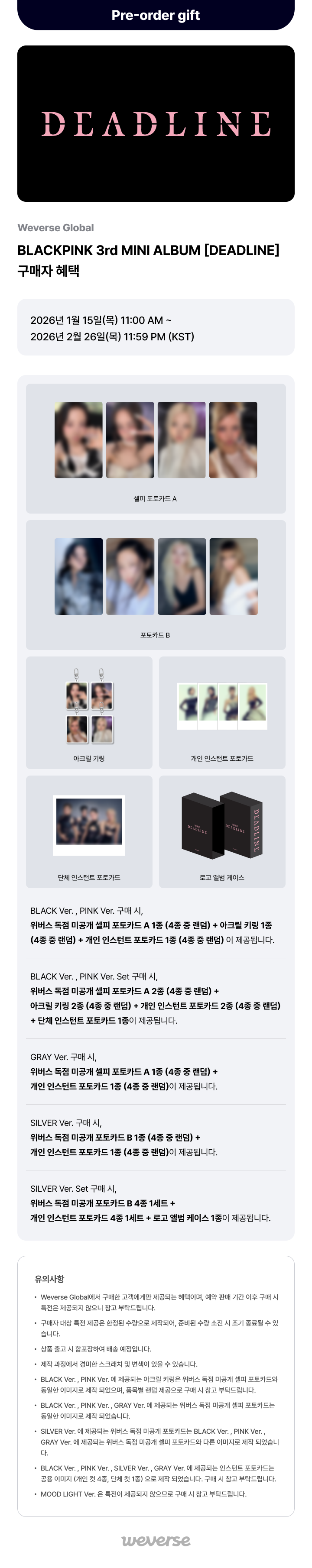 [Weverse Global] BLACKPINK 3rd MINI ALBUM [DEADLINE] 구매자 혜택