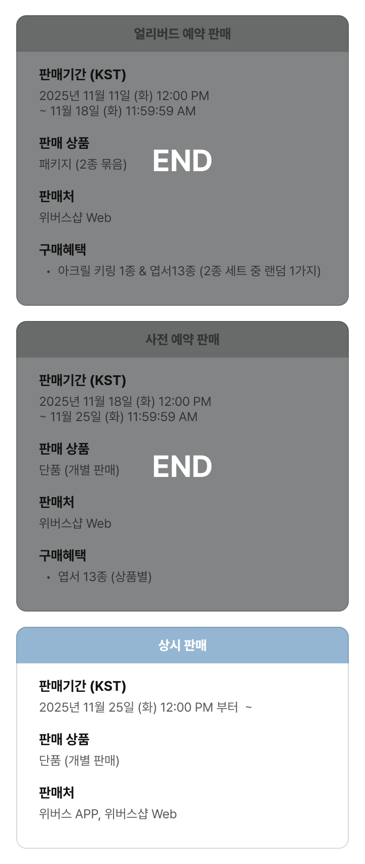 - 상시 판매 : 2025년 11월 25일 (화) 12:00 PM 부터