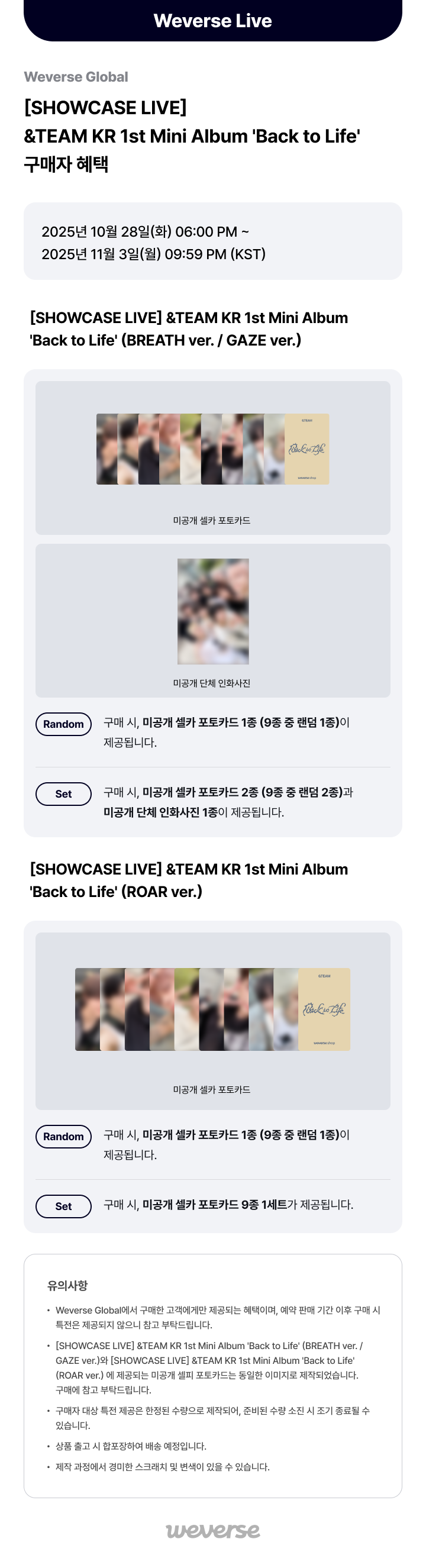 [Weverse Global] &TEAM Debut SHOWCASE LIVE 'Back to Life' 상품 구매자 혜택