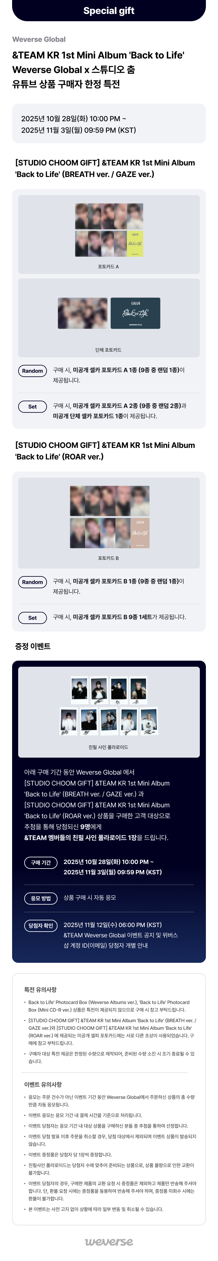 [Weverse Global] &TEAM KR 1st Mini Album 'Back to Life' Weverse Global x 스튜디오 춤 유튜브 상품 구매자 한정 특전!