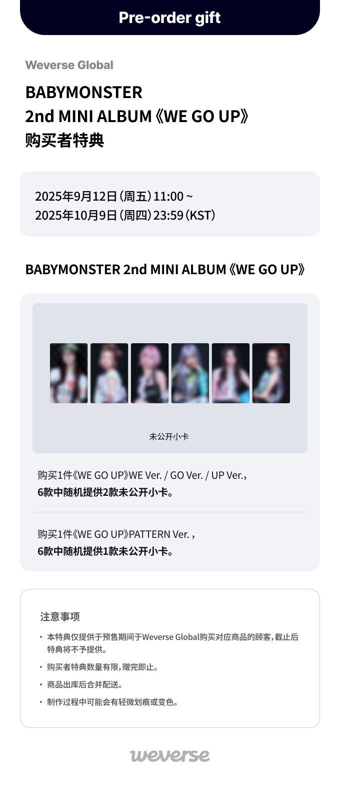 【Weverse Global】BABYMONSTER 2nd MINI ALBUM 《WE GO UP》购买者特典