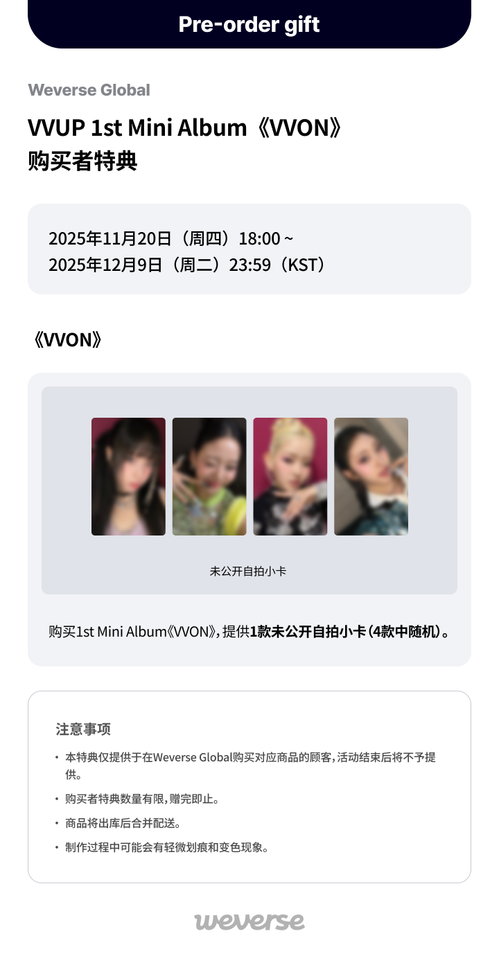 【Weverse Global】VVUP 1st Mini Album《VVON》购买者特典