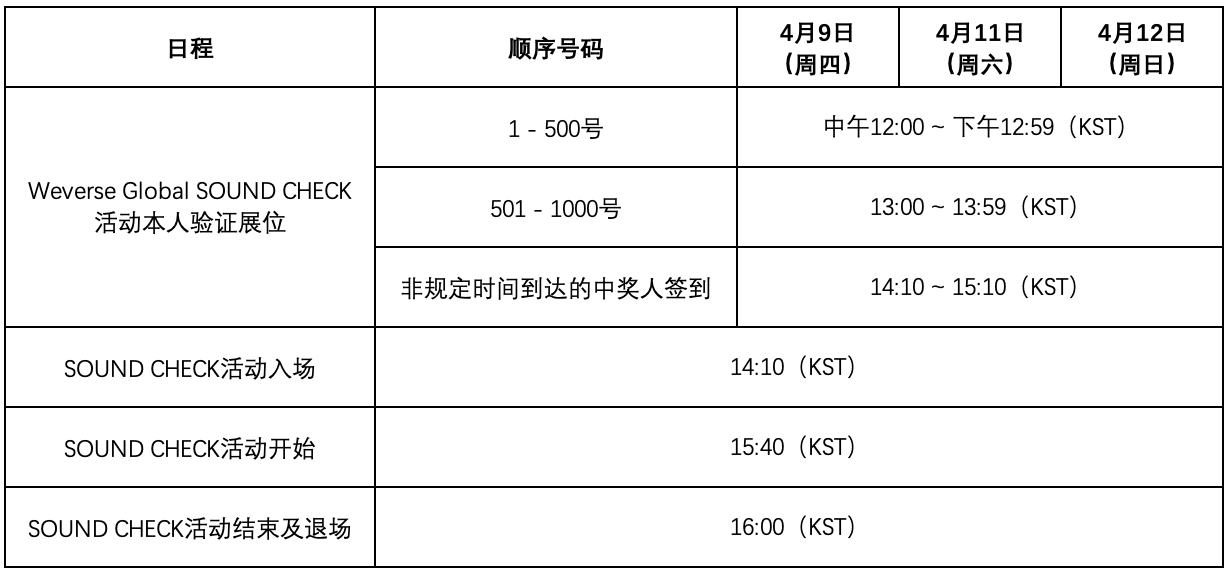 【Weverse Global SOUND CHECK现场运营时间】