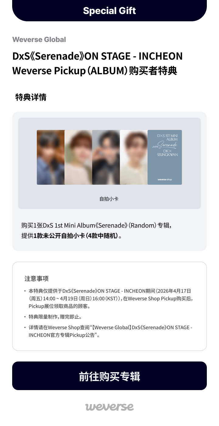 DxS《Serenade》ON STAGE_INCHEON Weverse Pickup(ALBUM)购买者限定特典!