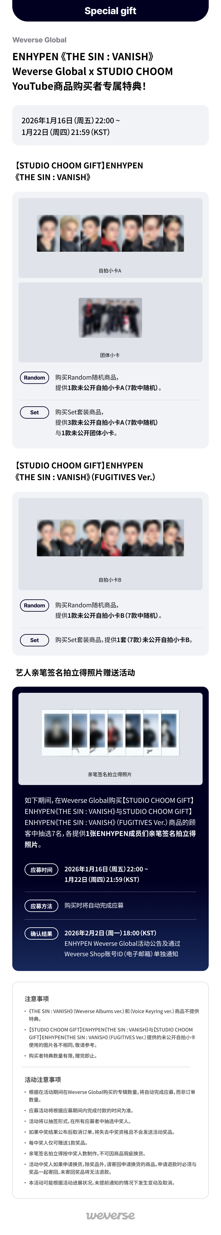 【Weverse Global】ENHYPEN《THE SIN : VANISH》 Weverse Global x STUDIO CHOOM YouTube商品购买者专属特典!
