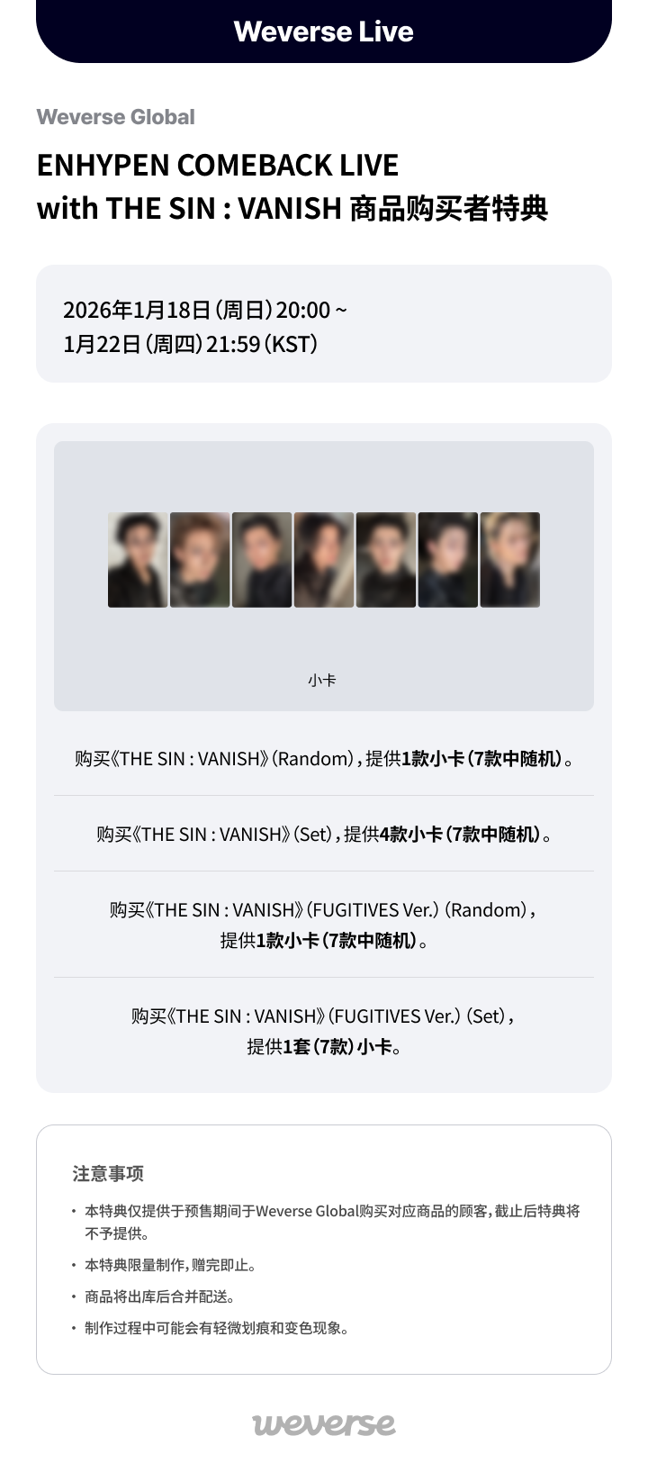 【Weverse Global】ENHYPEN COMEBACK LIVE with THE SIN : VANISH 🦇商品购买者特典
