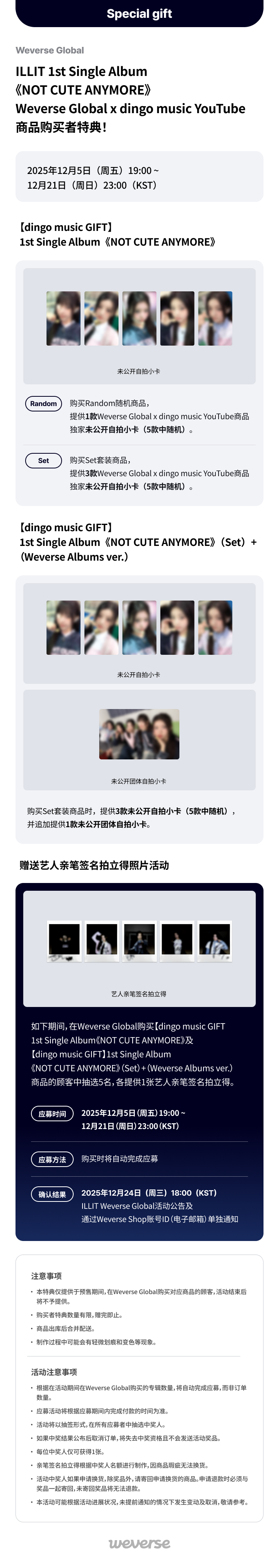 【Weverse Global】ILLIT 1st Single Album《NOT CUTE ANYMORE》 Weverse Global x dingo music YouTube商品购买者限定特典!