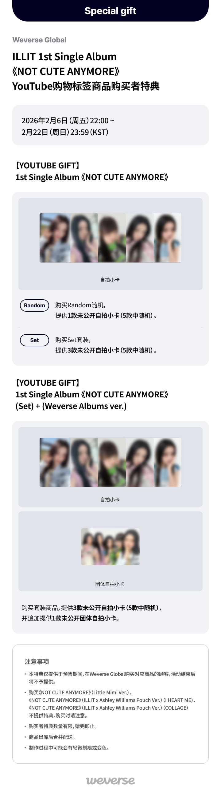 【Weverse Global】ILLIT 1st Single Album《NOT CUTE ANYMORE》 ('NOT ME' MV) YouTube购物标签商品购买者特典