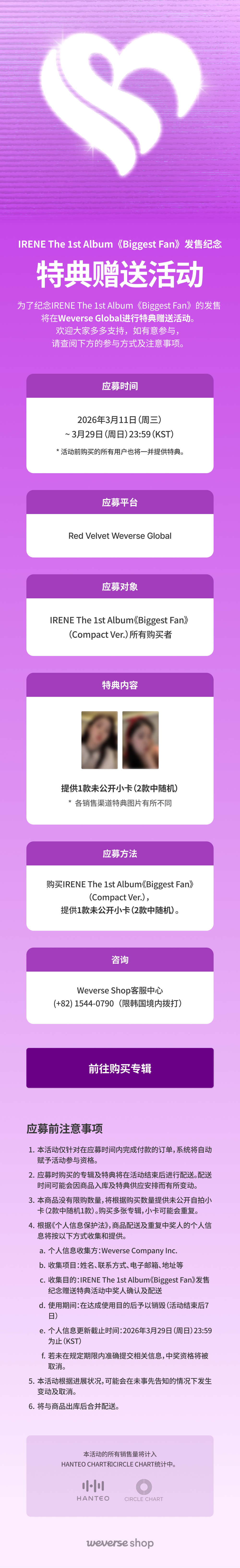 [Weverse Global] IRENE The 1st Album《Biggest Fan》发售纪念特典赠送活动 (26.03.23 updated)