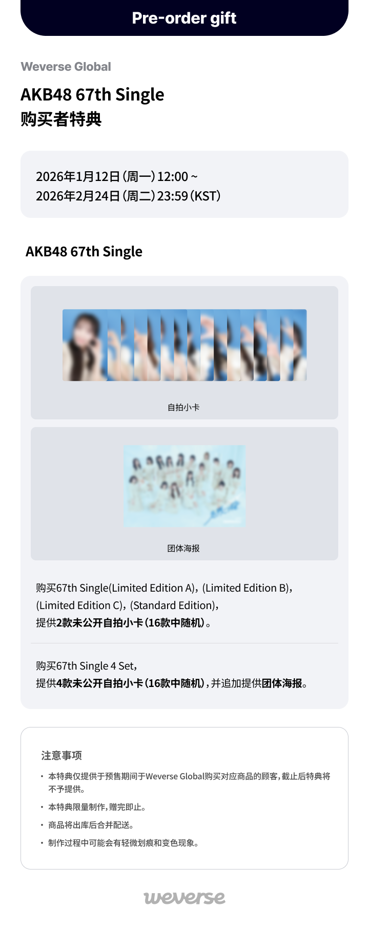 【Weverse Global】AKB48 67th Single《名残り桜》购买者特典