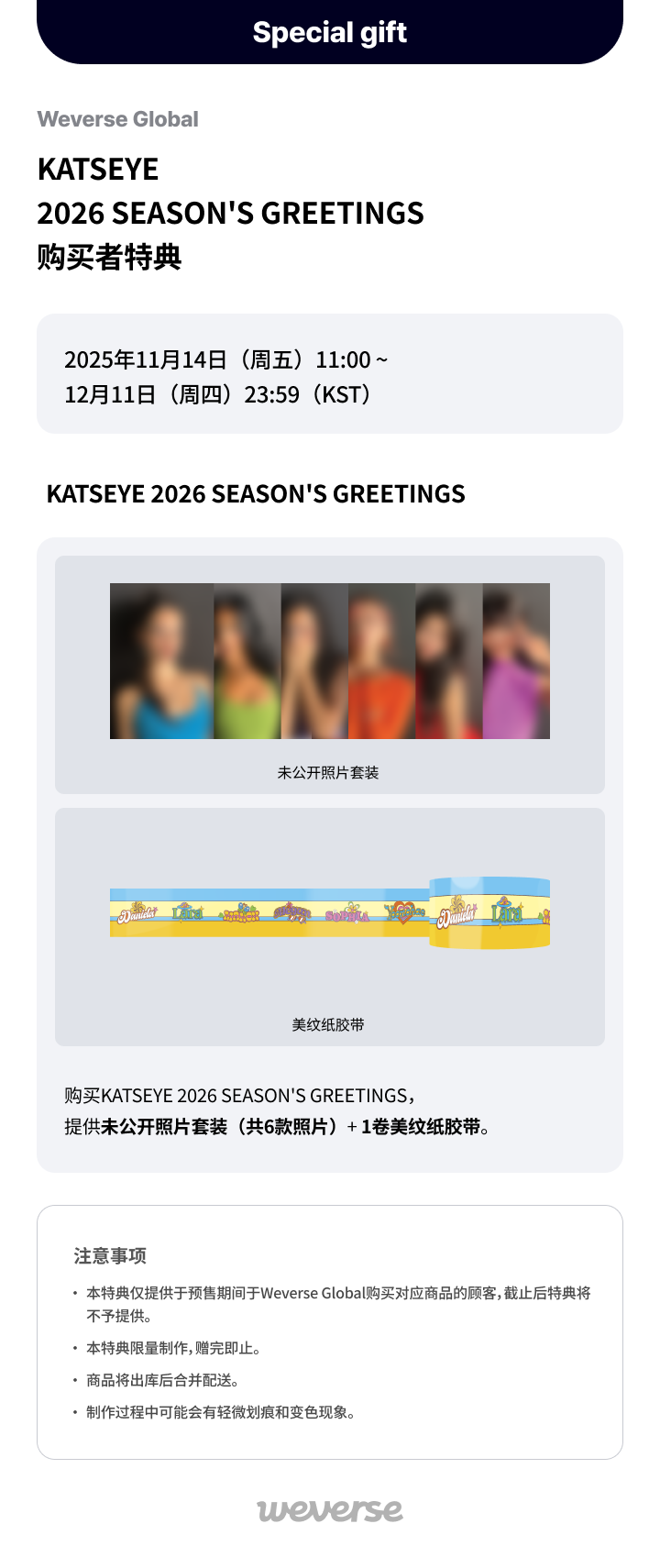 [Weverse Global] KATSEYE 2026 SEASON'S GREETINGS预售者限定特典