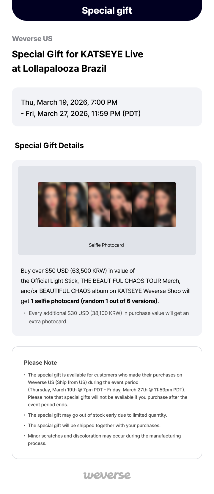 [Weverse US] Special Gift for KATSEYE Live at Lollapalooza Brazil