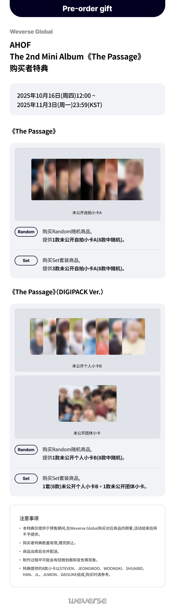 【Weverse Global】AHOF The 2nd Mini Album《The Passage》购买者特典