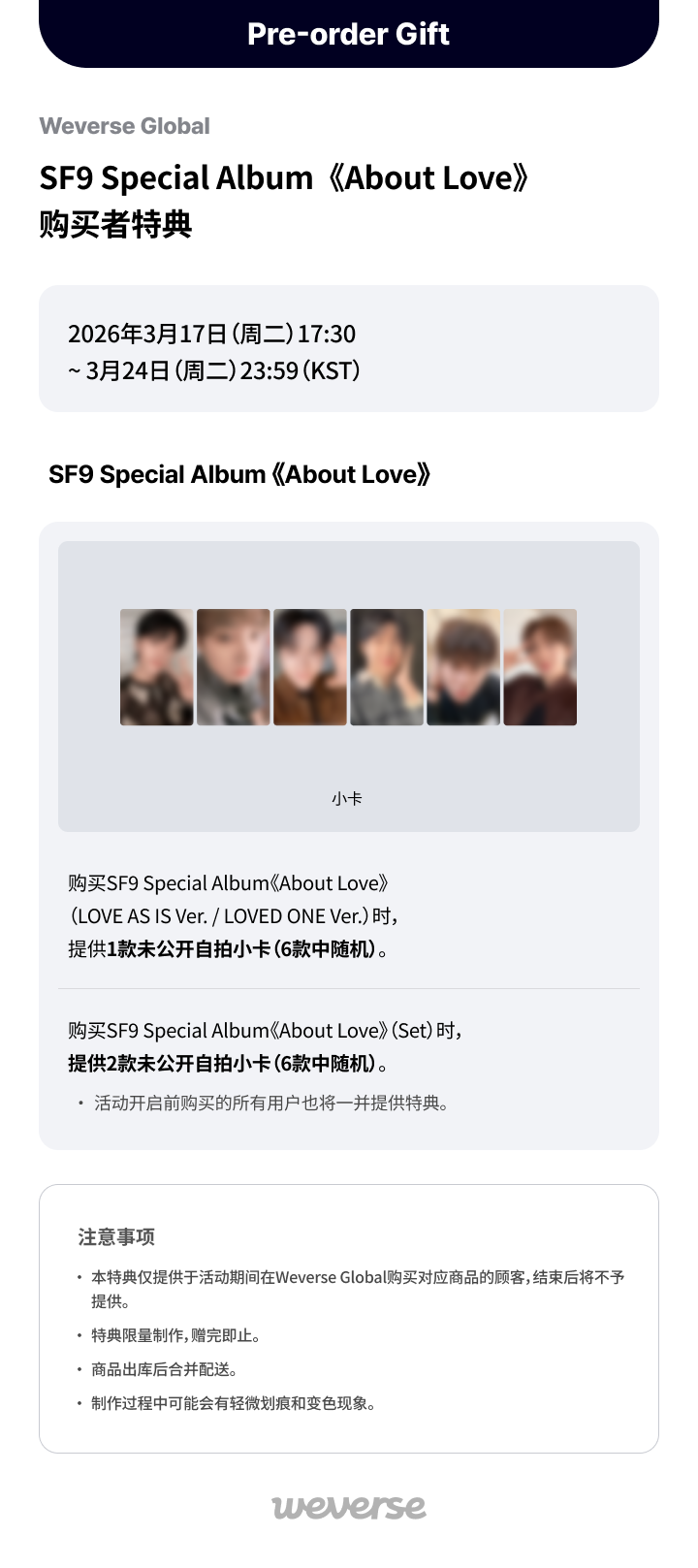 【Weverse Global】SF9 Special Album 《About Love》预售公告 (26.03.19 updated)