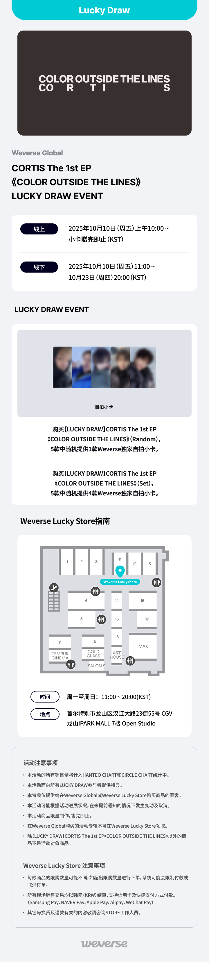 【Weverse Global】CORTIS The 1st EP《COLOR OUTSIDE THE LINES》LUCKY DRAW EVENT公告(第二轮)