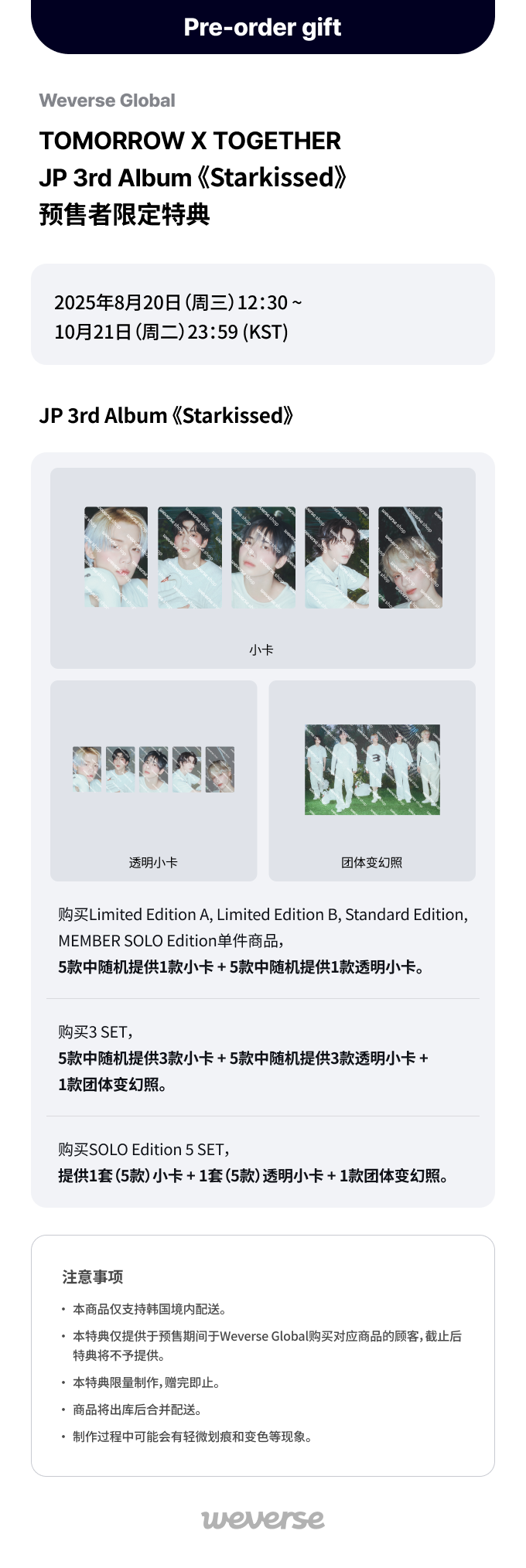 【Weverse Global】TOMORROW X TOGETHER JP 3rd Album 《Starkissed》预售者限定特典