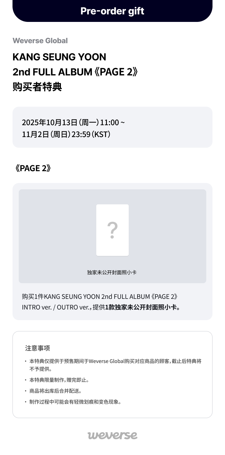 [Weverse Global] KANG SEUNG YOON 2nd FULL ALBUM [PAGE 2]구매자 혜택N