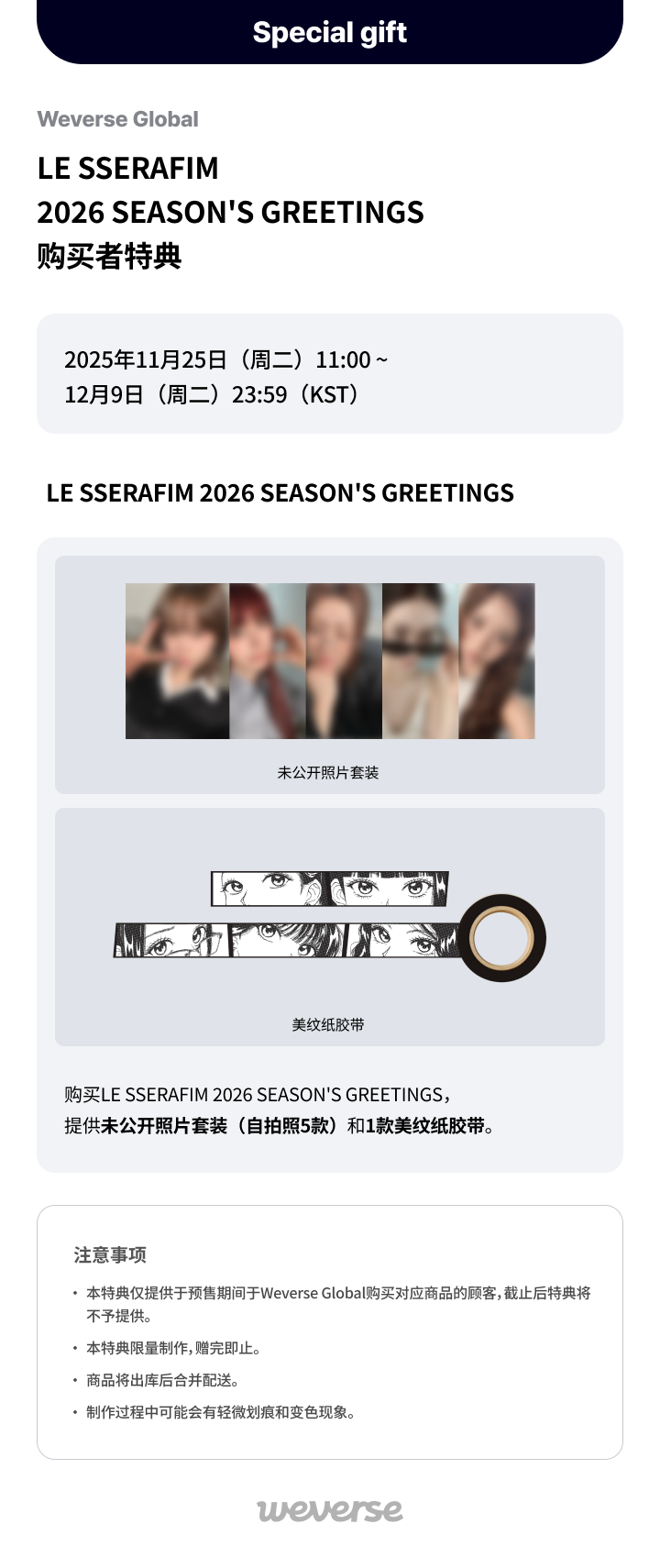 [Weverse Global] LE SSERAFIM 2026 SEASON'S GREETINGS预售者限定特典