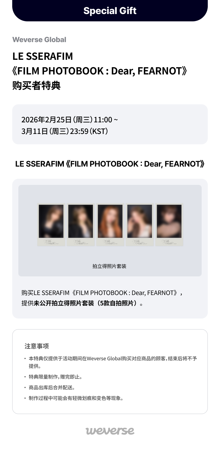 [Weverse Global] LE SSERAFIM 'FILM PHOTOBOOK : Dear, FEARNOT'预售者限定特典