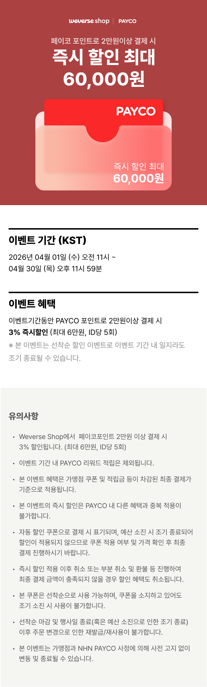 Weverse X Payco 4월 즉시할인 프로모션 안내