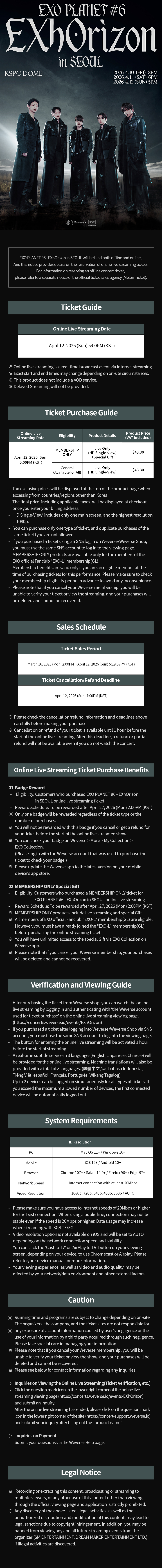 [Weverse Global] EXO PLANET #6 - EXhOrizon in SEOUL 在线直播观看券详细说明