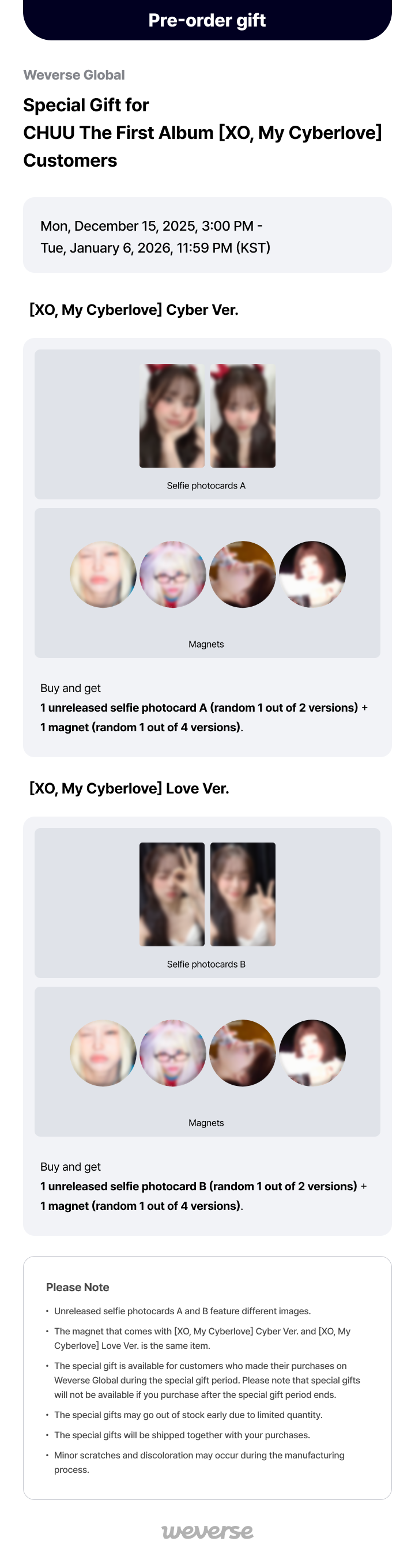 [Weverse Global] Special Gift for CHUU The First Album [XO, My Cyberlove] Customers