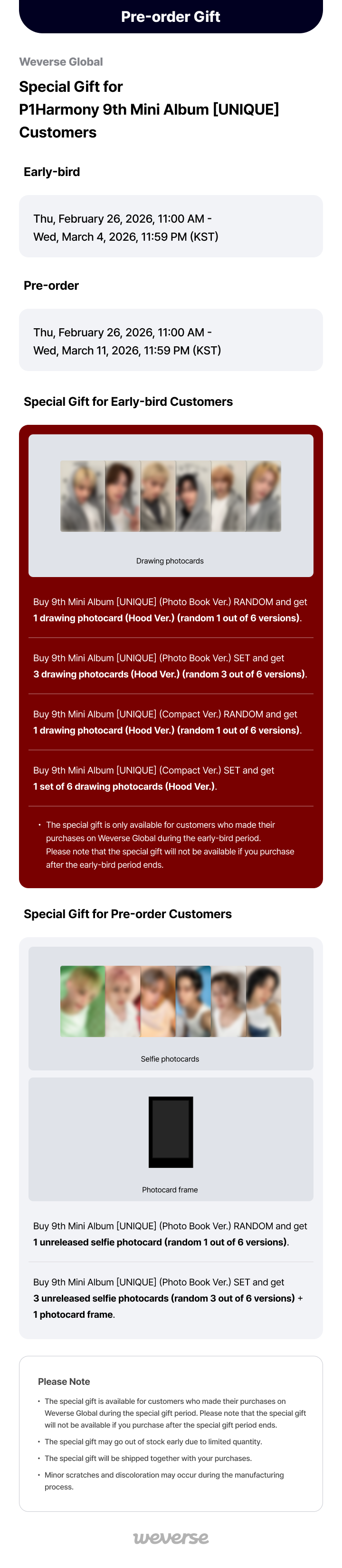 [Weverse Global] P1Harmony Special Gift for 9th Mini Album [UNIQUE] Customers